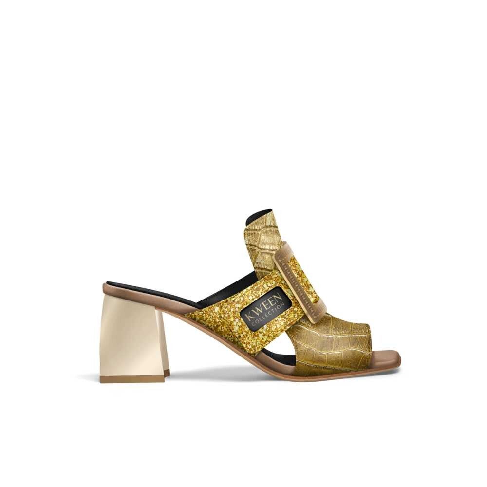 Made in Italy, this slide sandal is distinguished by an upper with fine cutouts and a wide strap, featuring an oversized gold-toned buckle. The block heel and lightly padded insoles ensures easy stepping, with the logo next to the buckle.
