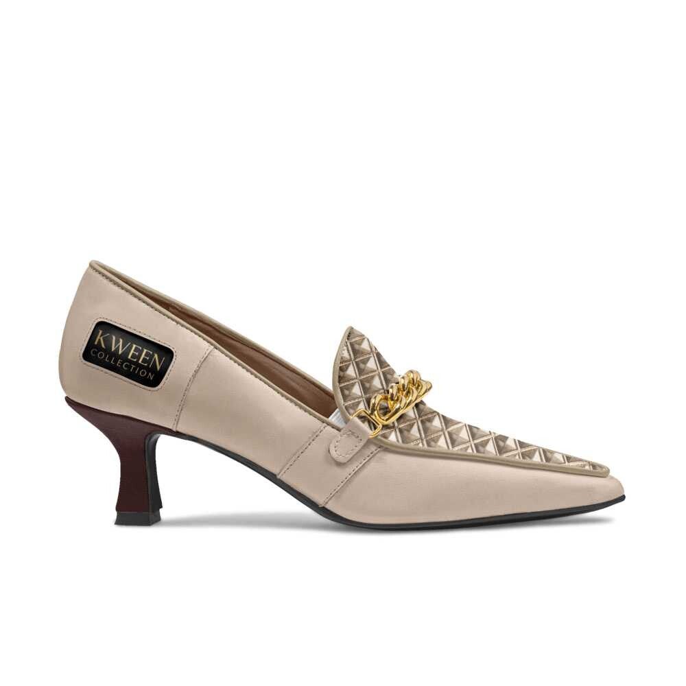 This fashion shoe combines a moccasin look with a traditional low heel. Key features include raised loafer stitching, a decorative golden chain, and a 5.5-cm (2..16 inches) heel. The high-quality materials ensure comfort, with the logo embossed on the heel counter.